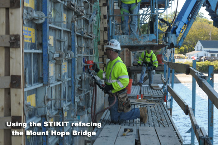 Below is a gallery of images that show the process of refacing a bridge pier on the Mount Hope Bridge.
